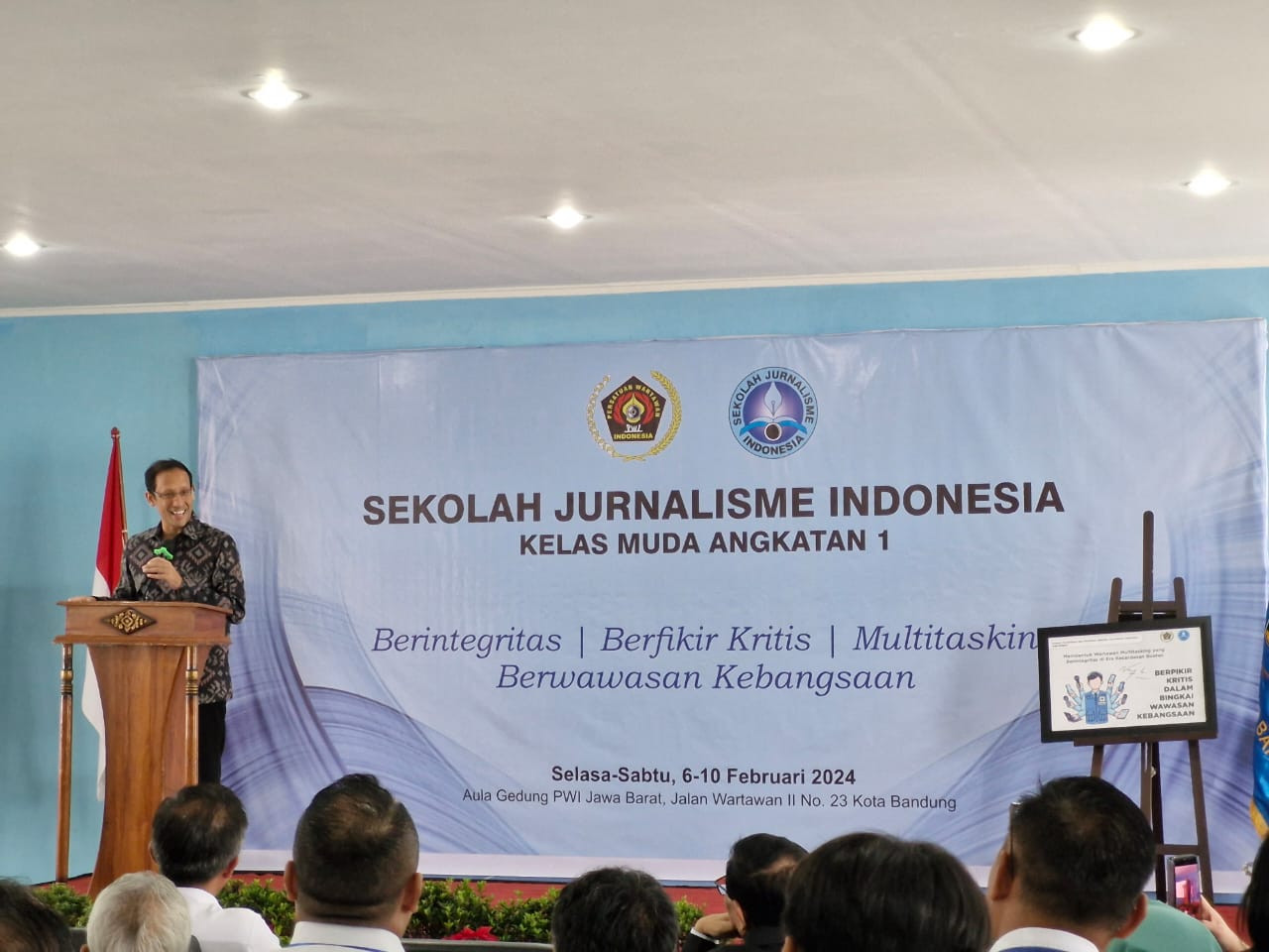 Hal itu disampaikan Nadiem dalam sambutannya di pembukaan Sekolah Jurnalisme Indonesia (SJI) Kelas Muda Angkatan pertama, Selasa (5/2/2024) di Sekretariat PWI Jawa Barat, Jalan Wartawan, Lengkong, Kota Bandung. Dalam momen itu, Nadiem pun berpesan agar para wartawan tetap menjaga kualitas jurnalisme di tengah disrupsi informasi.