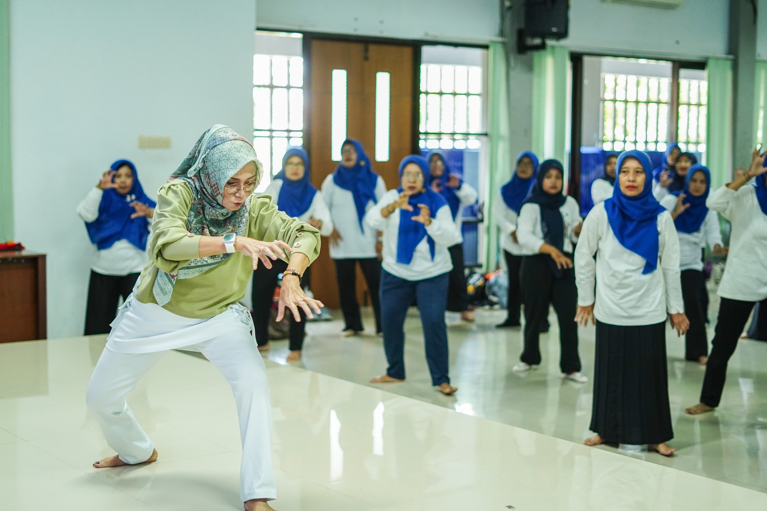 Pelatihan dibagi menjadi dua sesi: sesi pertama memperkenalkan Tari Gogor Putih dan sesi kedua menyajikan Senam Kreasi Kediriku. Ety Kusumaningtyas dari Sanggar Guntur menjelaskan bahwa Tari Gogor Putih terinspirasi dari ikon Kota Kediri, Macan Putih, yang dikaitkan dengan kisah Sri Aji Joyoboyo. “Harapannya, anak-anak dapat meneladani sosok Joyoboyo sebagai pemimpin yang bijaksana,” jelas Ety.