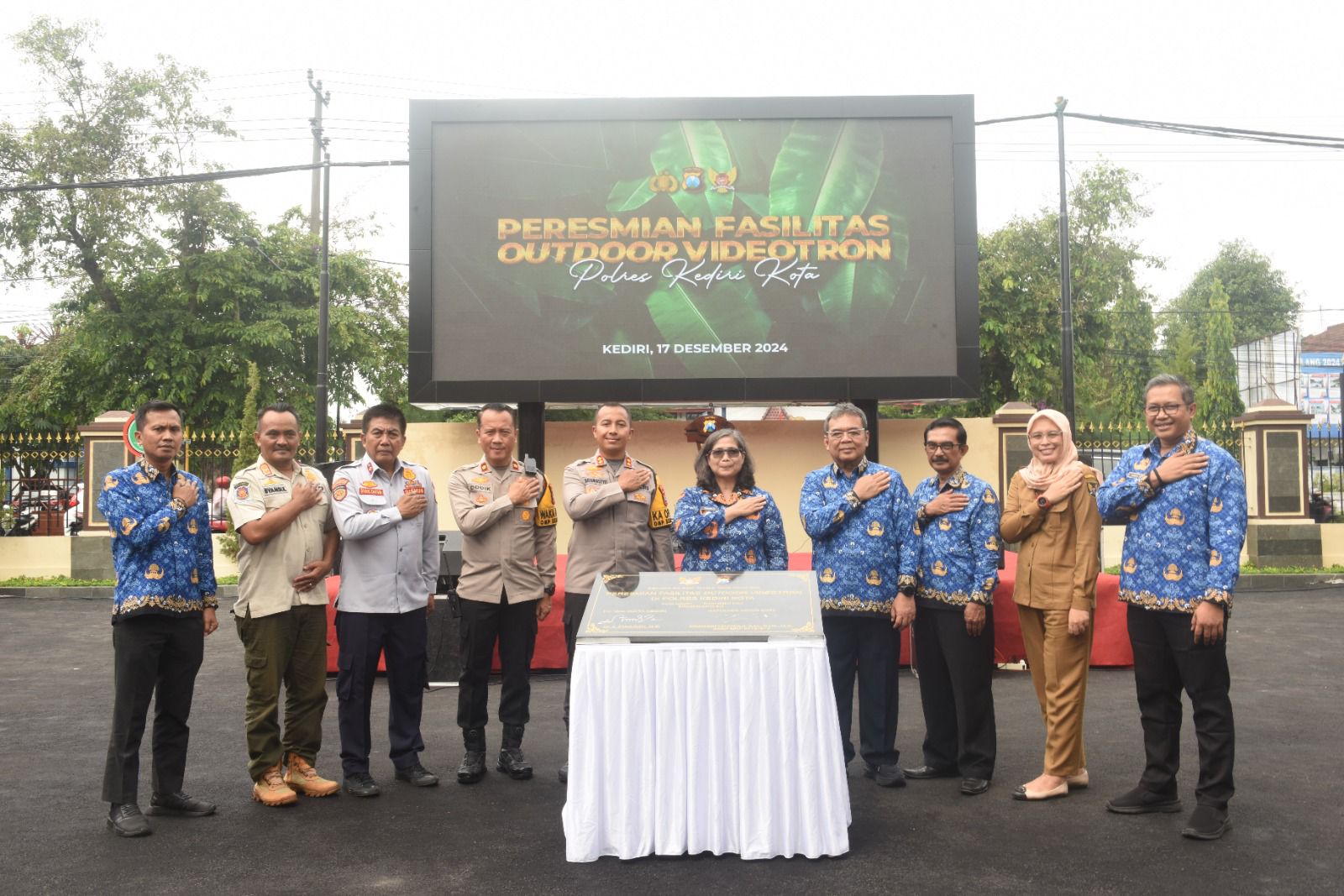 DAMAREMAS.COM, Kediri – Pj Wali Kota Kediri, Zanariah, bersama Kapolres Kediri Kota, AKBP Bramastyo Priaji, meresmikan fasilitas outdoor videotron di Mako Polres Kediri Kota pada Selasa (17/12). Peresmian ini ditandai dengan penandatanganan prasasti oleh Pj Wali Kota Kediri dan Kapolres Kediri Kota. Outdoor videotron ini memiliki ukuran 6×3 meter.